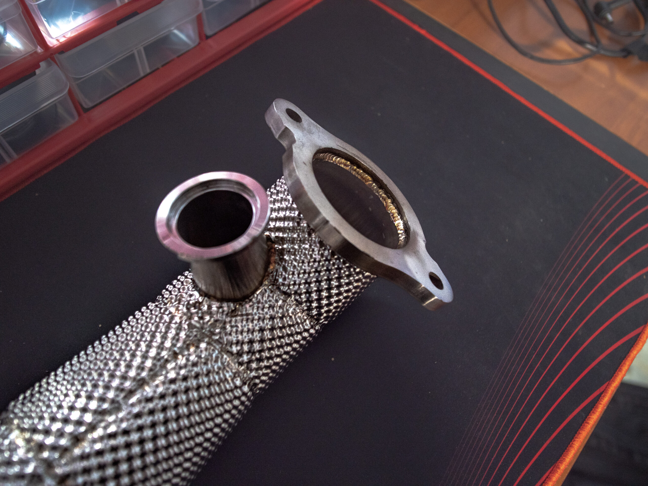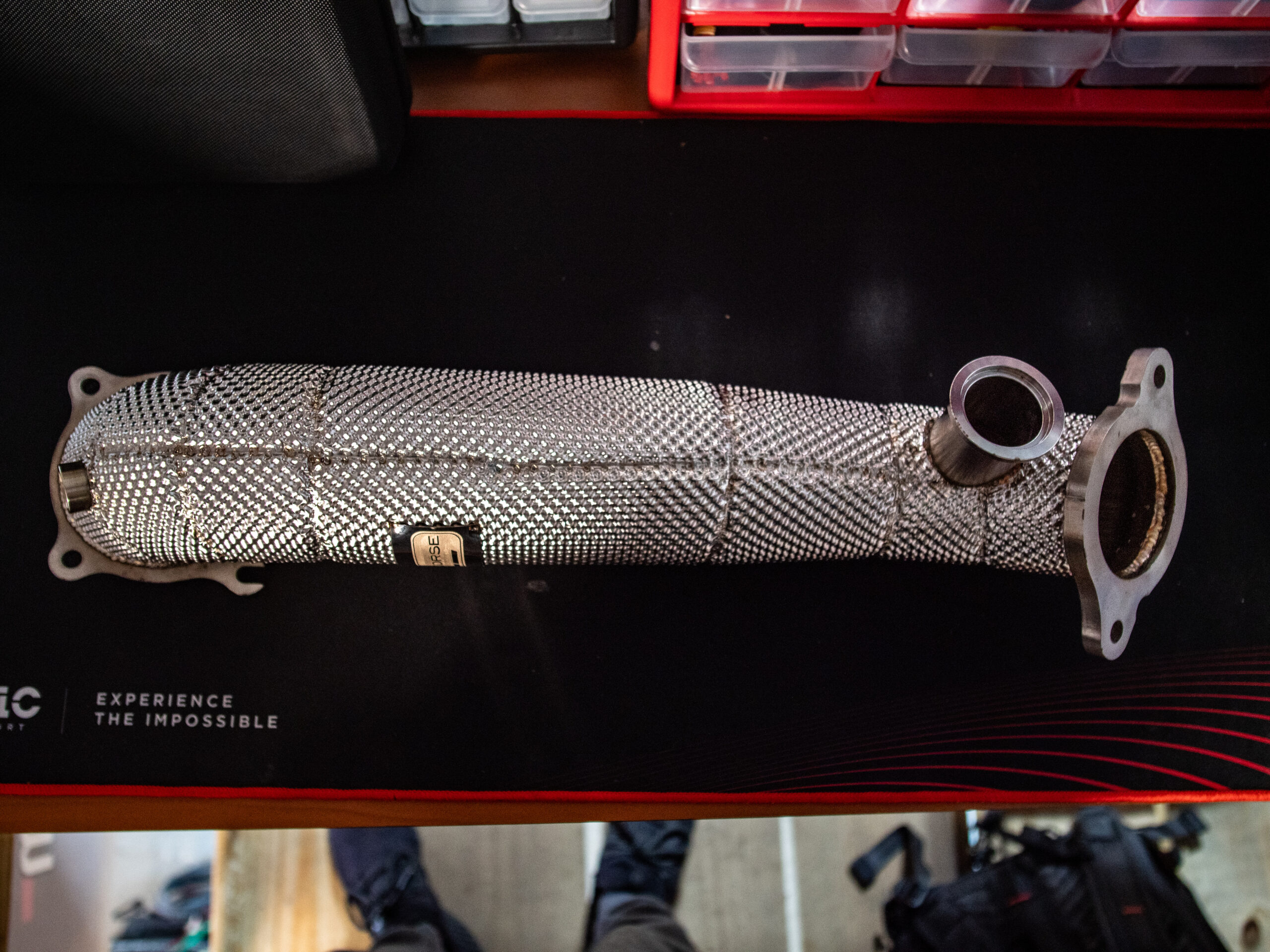 Straight-through downpipe for 1.4L Fiat / Abarth 500s. T-304 Steel heat shielding WILL cause a check engine light.