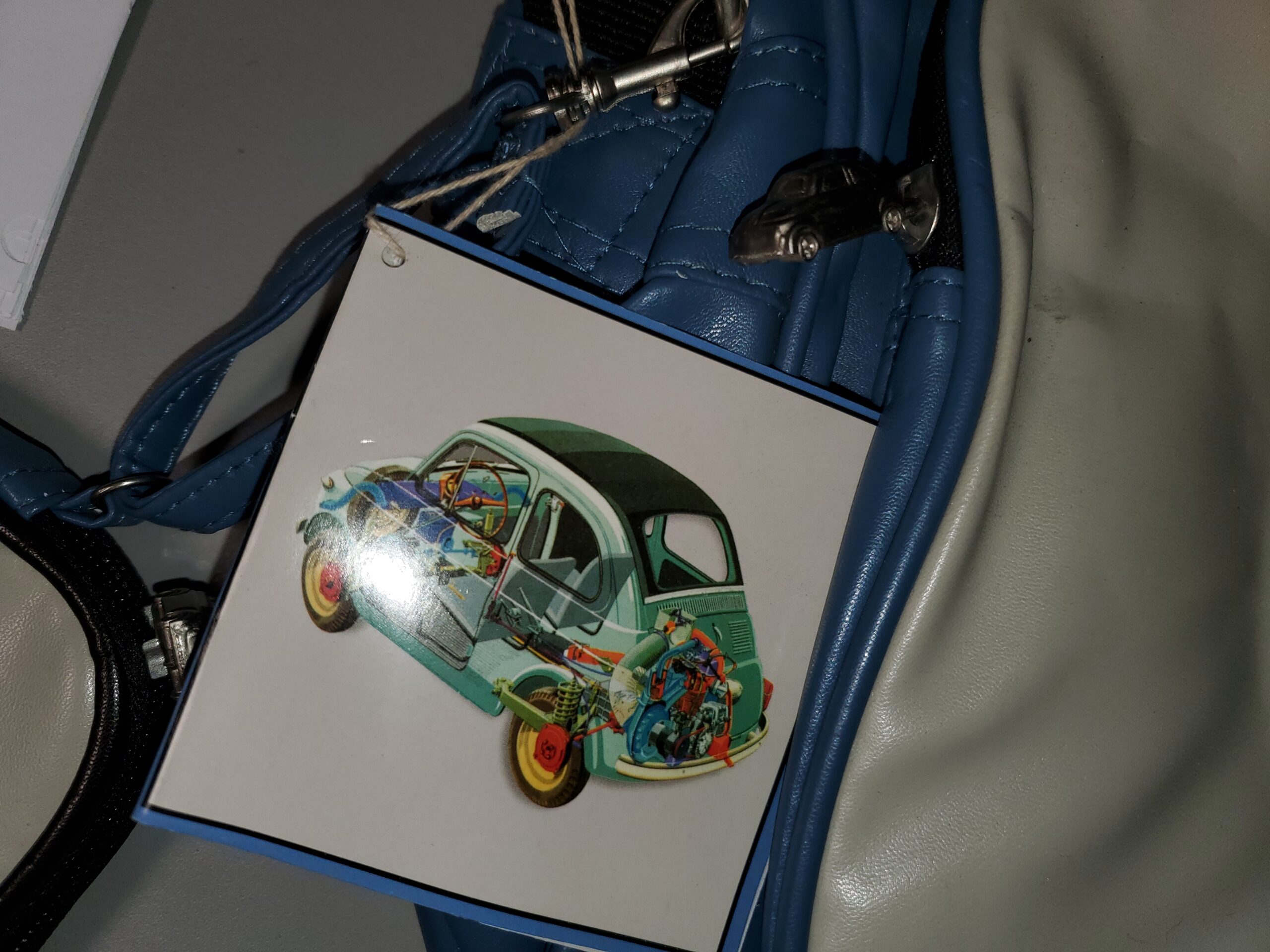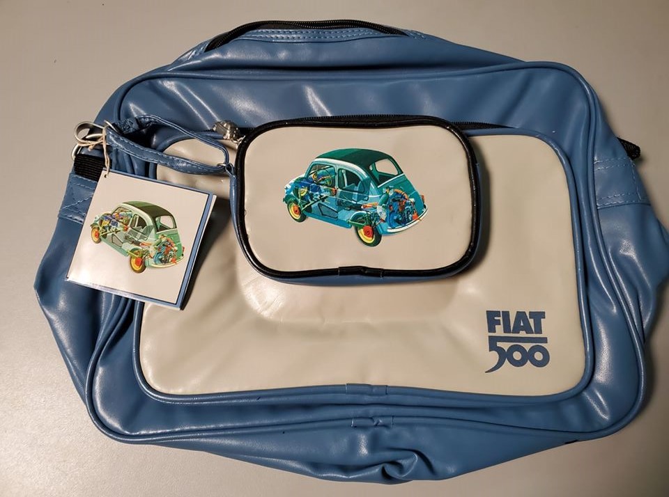 Comes with a detachable pouch sporting a vintage Fiat 500